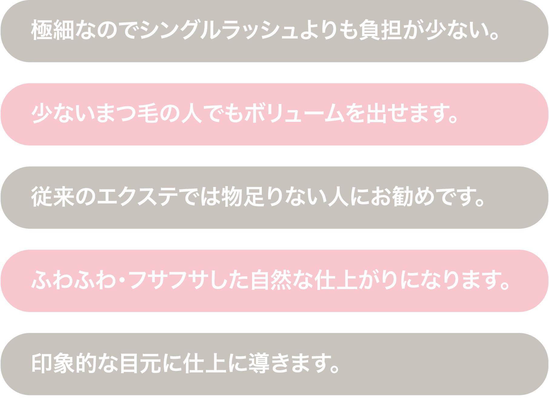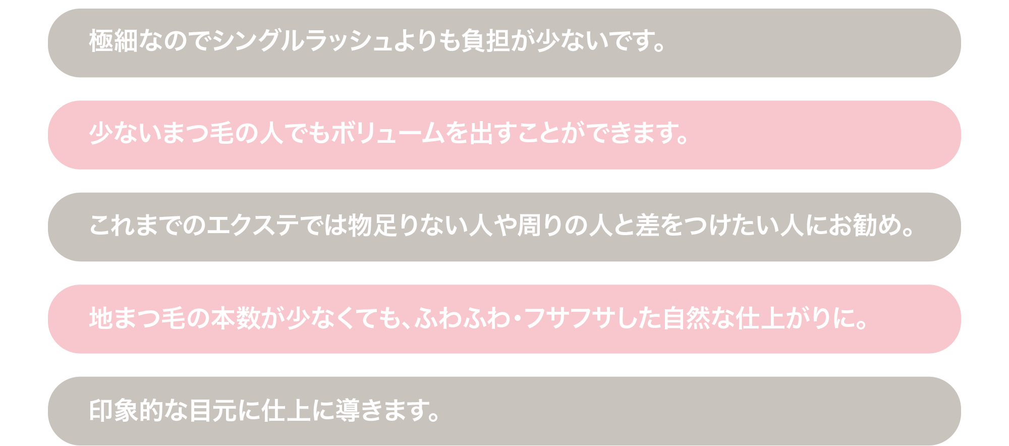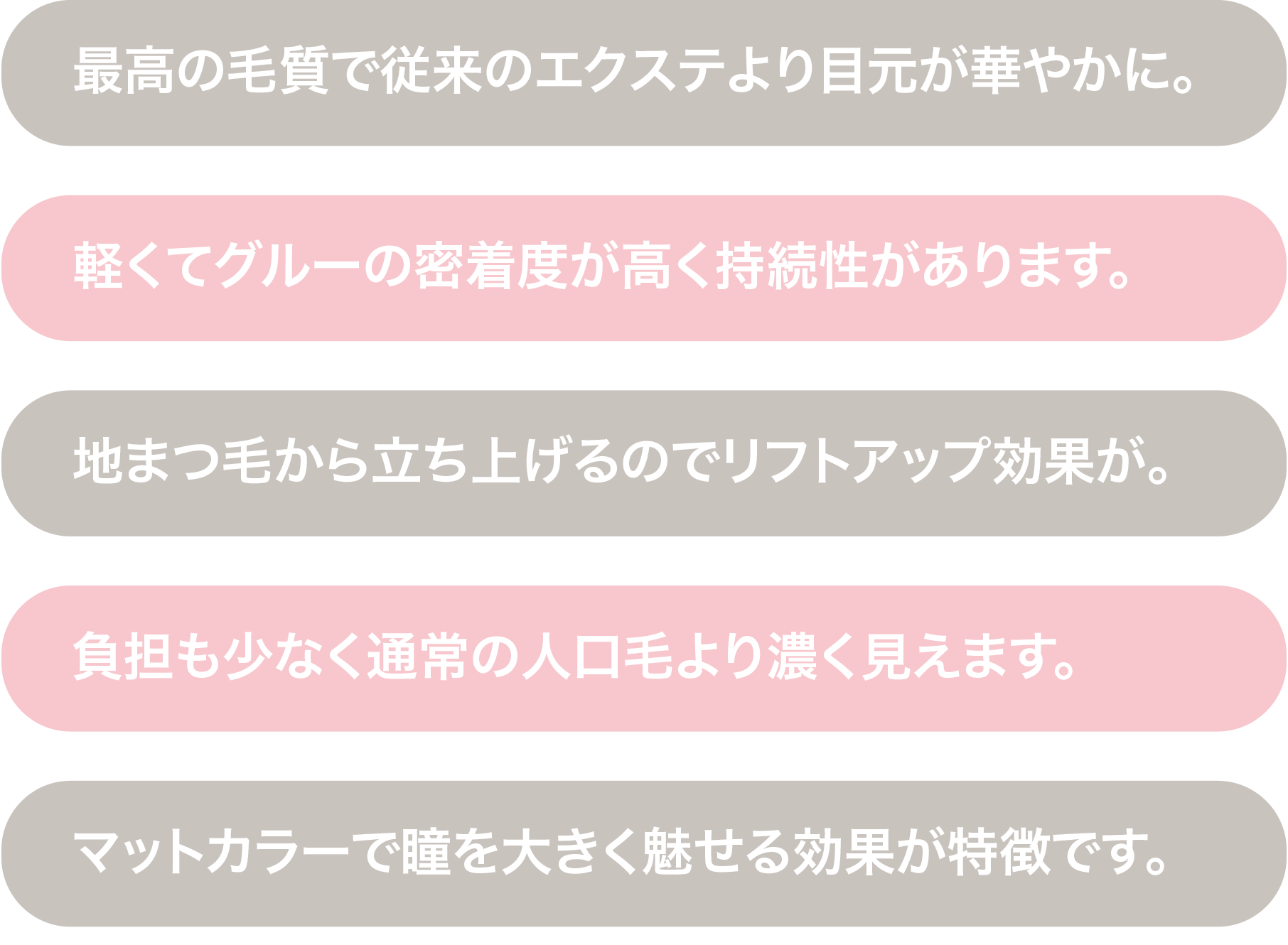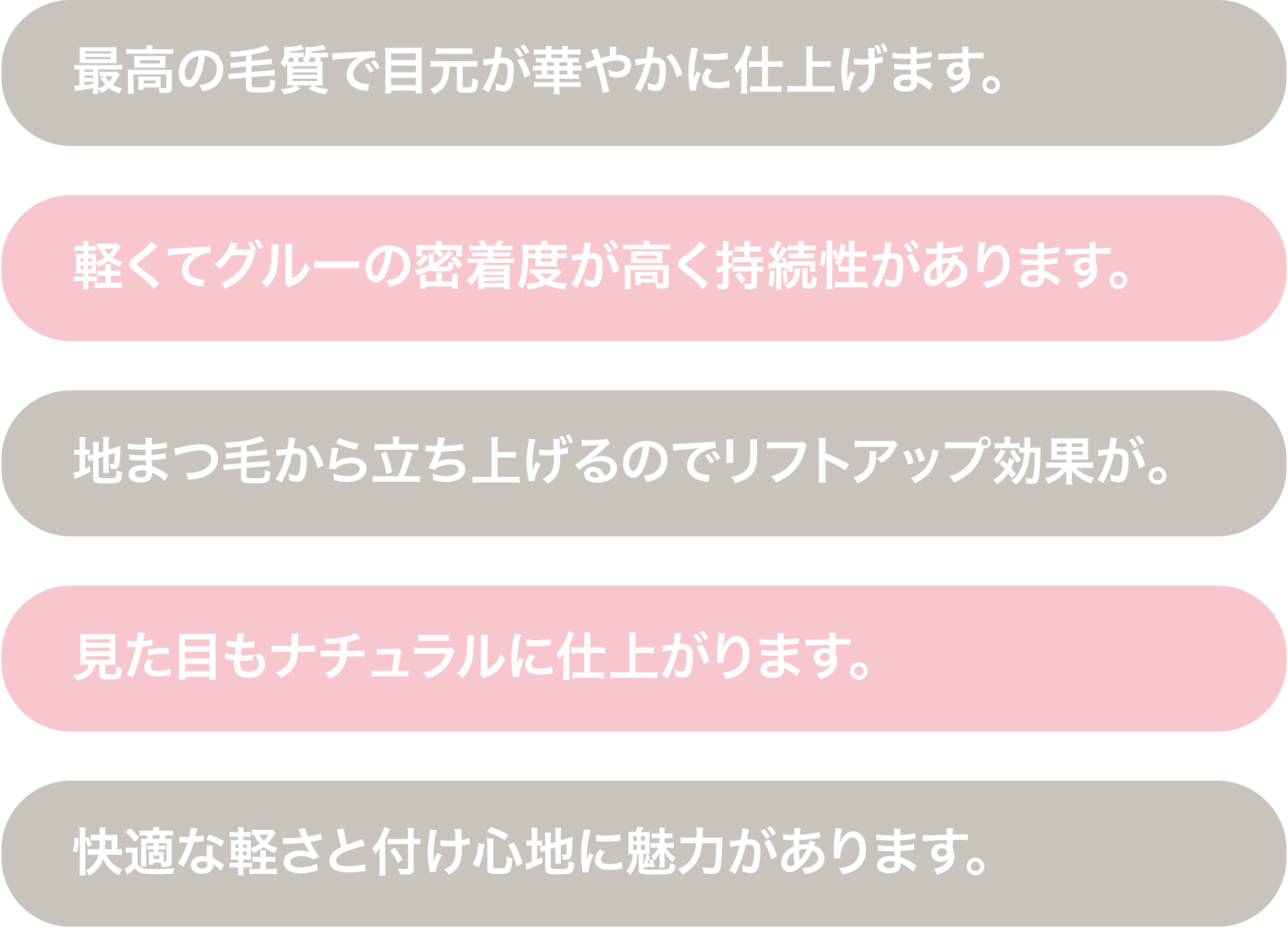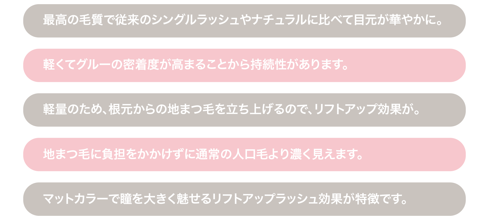 | コース内容:人気のAUDREY商品使用(丸形形状のフラットラッシュ) |
